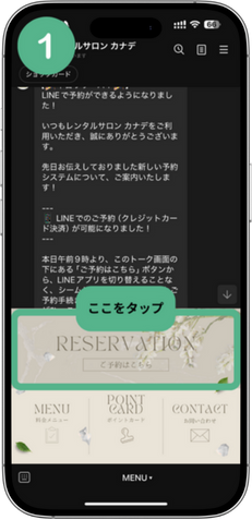 - 下の段にあるメニューの中から「RESERVATION ご予約はこちら」をタップしてください。