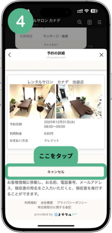 - 「予約の変更」と「キャンセル」があるので、どちらかを選びます。