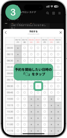 公式LINEから24時間好きな時にご予約いただけます。以下がご予約の流れです。