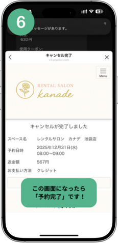 - キャンセルした場合は、キャンセル完了のメッセージが届きます。変更の場合は、変更した日時の案内などのメッセージが届きます。