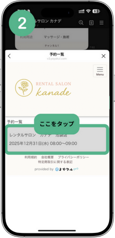 - LINE登録後、下の段にあるメニューの中から「RESERVATION ご予約はこちら」をタップしてください。希望日時に空きがあればその日時を選びます。